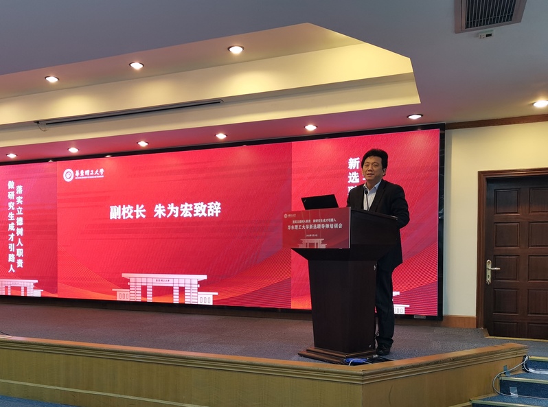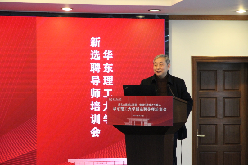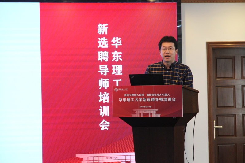 朱为宏致辞时对各位老师晋升为研究生导师表示祝贺,并介绍了近期我校在推进导师评价机制改革、导师选聘制度优化等方面的一些新举措。这些举措为年轻教师加入导师队伍创造了更优越的条件,同时也对加强导师培训、培养过程监控等提出了新的要求。朱为宏指出,研究生院今年特别优化了导师选聘制度,取消导师申请职称限制,对特聘研究员、特聘副研究员、国家高层次青年人才第一时间内开通博导、硕导绿色通道。2021年,学校新增博士生导师46名,硕士生导师110名,致力于让青年教师有更多、更直接、更实在的获得感。他还结合自身指导研究生的经历,建议新导师不断引导学生主动融入科研,积极发挥优秀学生的带动效应,确保学生按期顺利毕业。他表示,各位新导师的加入,将为我校科学研究和研究生培养注入新的力量,也必将为学校“双一流”建设作出新的贡献。