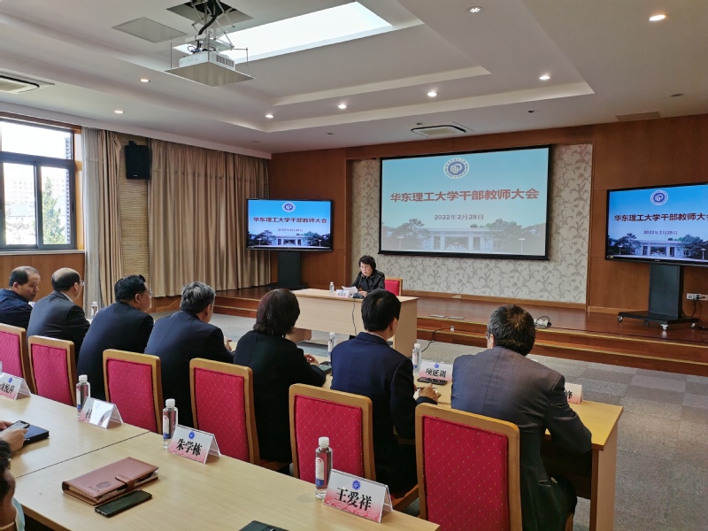 2月28日下午,学校在徐汇校区和平楼第二会议室召开干部教师大会,校党委书记杜慧芳,校长、党委副书记轩福贞,以及学校领导班子成员、党委委员、纪委委员出席会议。