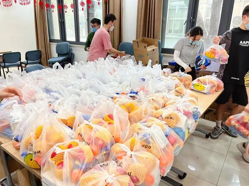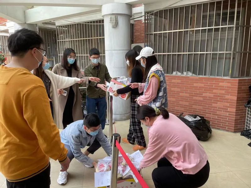 化学学院开展了为健康观察学生送慰问物资的活动。本科生徐汇党支部建立的学生党员先锋队承担主要工作,大家从南门口接收物资,然后运送、分装、打包,将水果、口罩、酒精湿巾、零食发到同学们手中。师生同舟共济,共克时艰。