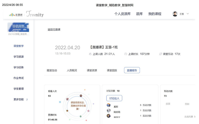 推荐理由:朱老师教学认真仔细,逻辑思路清晰,重点和难点突出,授课内容前后衔接严密。通过随堂练习等手段,对所讲授的知识点进行师生、学生间的频繁互动,提升了线上直播课堂的教学效果。