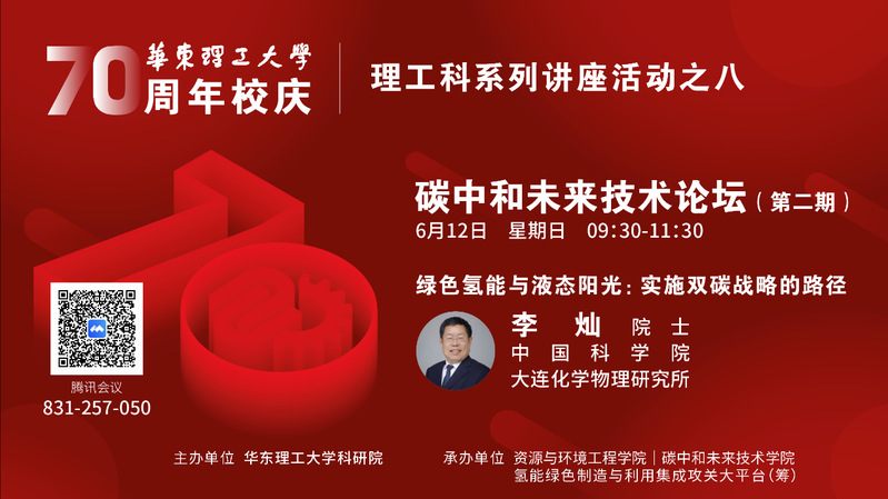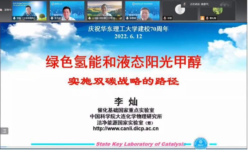 为迎接学校70周年华诞,进一步落实习近平总书记关于我国碳中和愿景的重大宣示,加强高端平台建设、促进战略领域学术交流,6月12日,由科学技术发展研究院主办,资源与环境工程学院、碳中和未来技术学院、氢能绿色制造与利用集成攻关大平台(筹)共同承办的“70周年校庆碳中和未来技术论坛”在线上举行。会议特别邀请到中科院大连化物所李灿院士作学术报告。论坛由资源与环境工程学院院长汪华林教授主持,副校长朱为宏教授对李灿院士的到来表示热烈欢迎和感谢。科研院院长赵黎明参加会议,300余名师生在线领略大师风范。