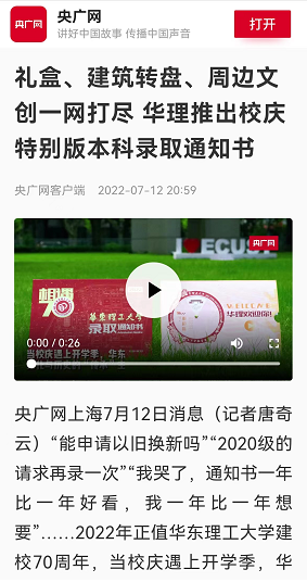 【央广网】礼盒、建筑转盘、周边文创一网打尽 华理推出校庆特别版本科录取通知书