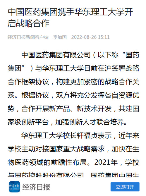 【中国新闻网】华理携手中国医药集团有限公司开启全面深度战略合作