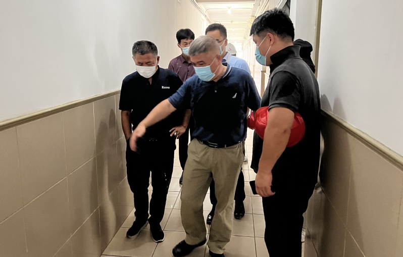 李涛检查了徐汇校区南侧门及围墙拆除区域,6舍小浴室及体育学院实验室改造及危房拆除施工现场。考察了华林餐厅隔油池改造效果和1号学生公寓样板间。在学生公寓7舍暑期常规维修工地,李涛对公寓维修细节提出改进意见,要求施工单位克服工期困难,确保学生入住需求。