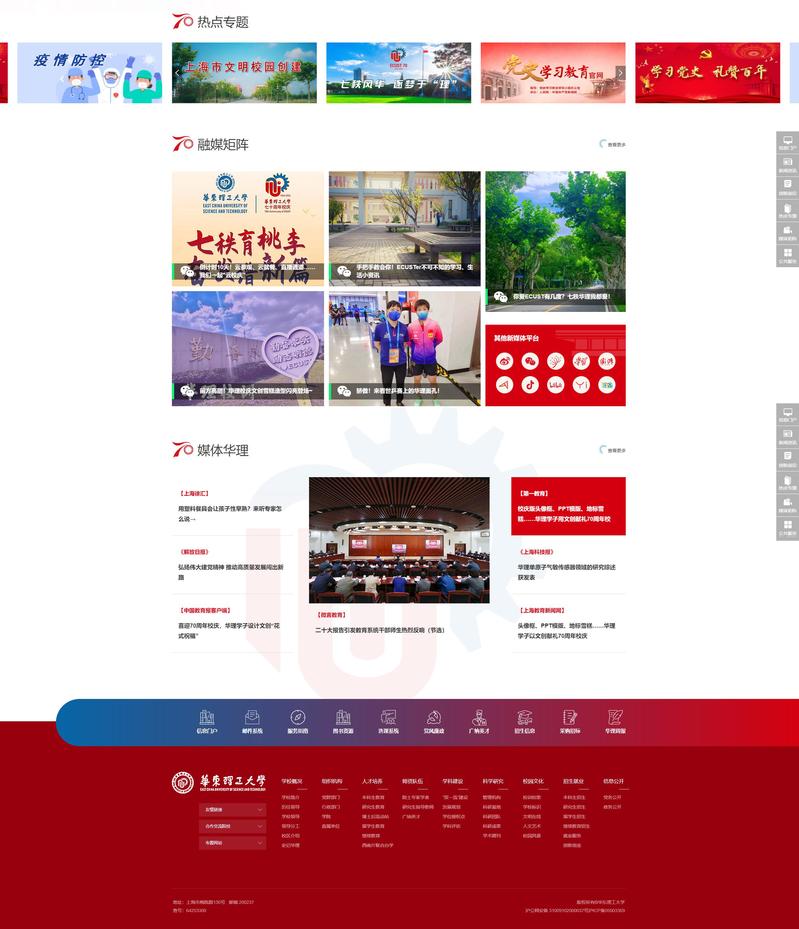 此次改版以更好地弘扬华理精神、体现华理文化、展示华理形象和服务广大师生为出发点,以增强官网的功能性、服务性为目标,在吸收借鉴国内外众多知名高校网站建设经验的同时,也结合了当下的设计流行趋势,希望给读者用户以更为新鲜的阅读和交互使用体验。