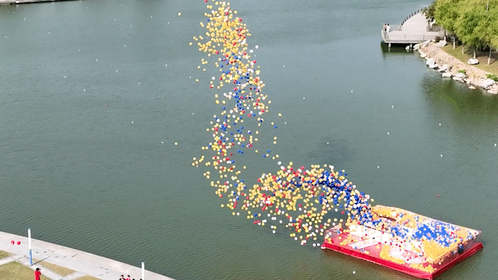 伴随着大学生合唱团现场带来的《一起向未来》的歌声,沈海涛、李剑等校领导与师生代表共同放飞了承载着华理荣光、希望与未来的气球,共同祝福华理70岁生日快乐。冉冉上升的彩色气球布满湛蓝的天空,在场师生举目仰望,在歌声中回忆往昔的奋斗,感念七十载的芳华与初心,共同展望更加光明的未来。