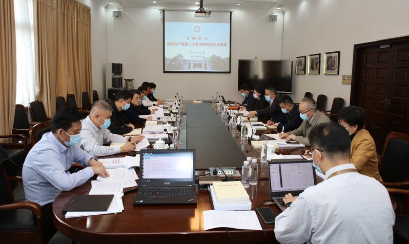 10月24日下午,校党委中心组在和平楼第三会议室召开学习会专题学习党的二十大精神。校党委书记杜慧芳主持学习会。校长轩福贞因为在北京学习,作了书面交流。校党委副书记、纪委书记沈志超,校党委副书记项延训、沈海涛,校党委常委、副校长李涛、王慧锋、朱为宏、阎海峰、李剑,以及校党委常委、宣传部部长夏江雯参加了学习研讨。
