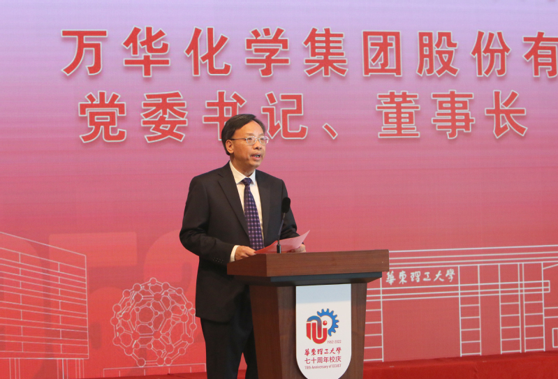 图片说明:万华化学集团股份有限公司党委书记、董事长廖增太作为校友代表发言