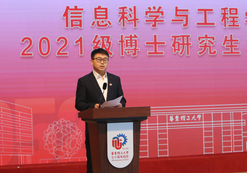 图片说明:信息科学与工程学院2021级博士研究生杨孟平作为学生代表发言