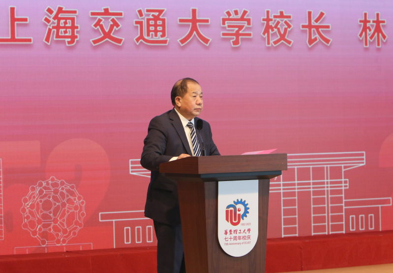 图片说明:上海交通大学校长林忠钦院士作为兄弟高校代表致辞