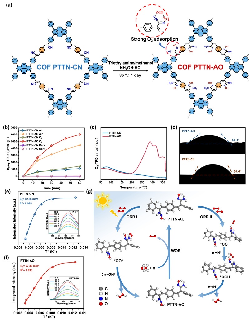 图片说明:在COF中引入偕胺肟基构建氢键网络以促进光催化全合成H2O2的新策略