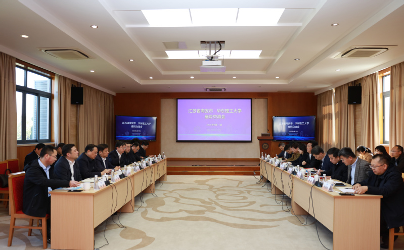 朱为宏对谭真一行的来访表示热烈欢迎,对海安市给予学校事业发展的关心支持表示感谢,并介绍了学校的历史沿革、学科特色、人才培养、科学研究等情况。座谈会上,李春忠表示,华理学科特色鲜明,在化学化工领域具有深厚的学科底蕴和突出的人才、技术、产学研转化优势。希望双方发挥各自优势特色,搭建科技创新平台、创新工程人才培养模式、加快科技成果孵化,为服务区域协同创新与经济社会高质量发展贡献力量。