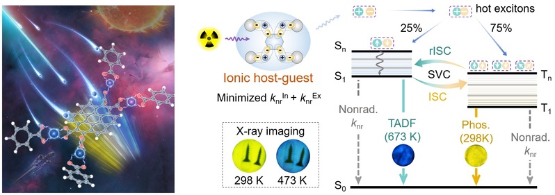 图片说明:基于双重限域离子主客体策略构建耐超高温的有机三线态闪烁体