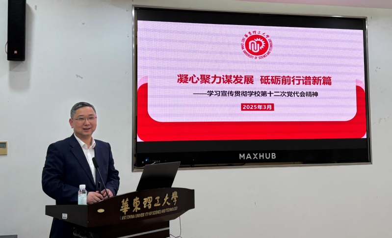 为深入学习宣传贯彻学校第十二次党代会精神,准确把握党代会的精神实质、丰富内涵和实践要求,3月26日下午,化工学院党委邀请校党委副书记宋来做客第十一期“知化讲堂”,开展学习宣传贯彻学校第十二次党代会精神宣讲活动。活动由学院党委书记段学志主持。院长徐至、学院党政班子成员、党支部书记及青年教师代表出席活动。