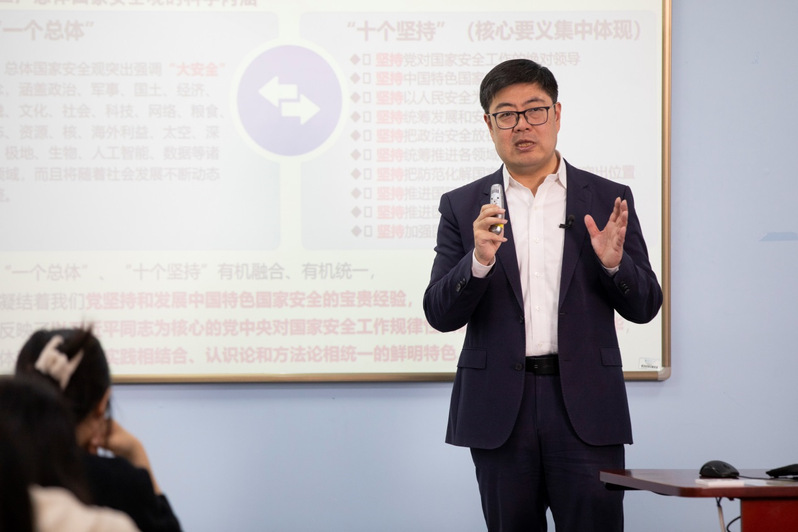 图2. 校党委副书记沈海涛讲授“国家安全绪论”专题课