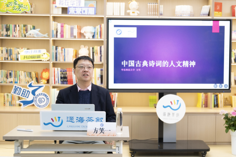 午后,在浓厚的校园文化氛围里,央视《中国诗词大会》特邀出题专家、华东师范大学方笑一教授做客“通海茶叙”第1000期,以《中国古典诗词的人文精神》为题,为师生带来一场精彩的文化讲座。
