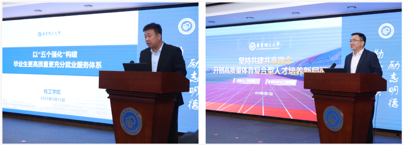 在交流发言环节,化工学院院长徐至介绍了学院“五个强化”提升就业工作引领力、供给力、驱动力、硬实力、牵引力,从而促进高质量充分就业的做法。体育科学与工程学院院长叶心明分享了学院以问题导向、目标导向精准施策,坚持共建、共育、共享理念,多渠道全员全周期稳步推进学院就业工作的方法举措。