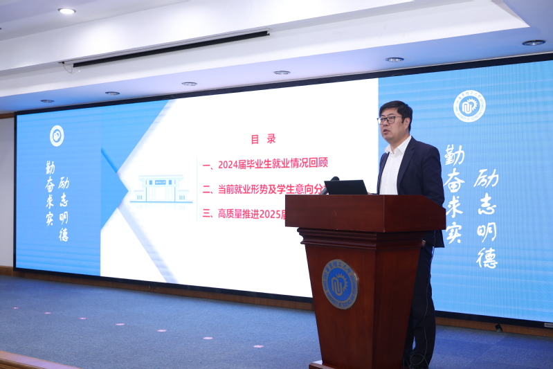 校党委副书记沈海涛在会上作专题报告,全面总结了2024届毕业生就业工作情况、分析了当前形势,对标上级要求,对做好2025届毕业生就业工作进行了重点部署。