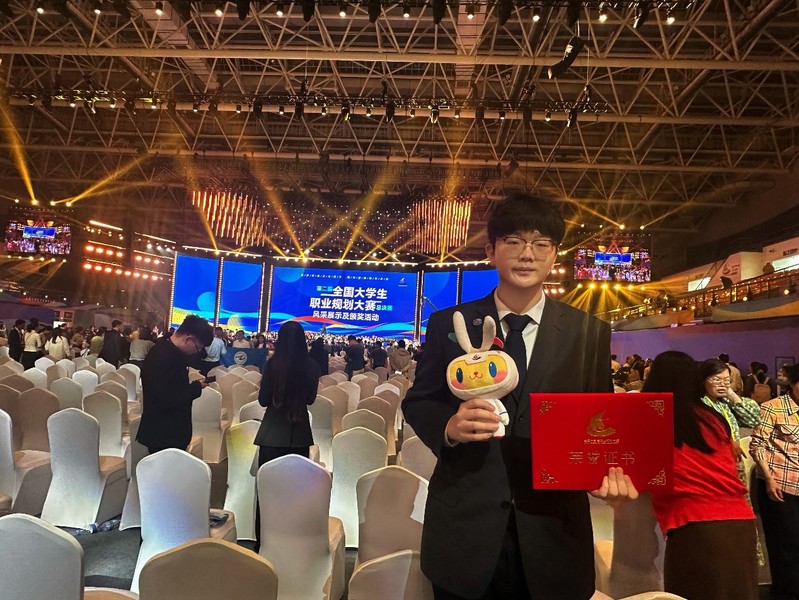4月19日,由教育部和湖南省人民政府共同主办的第二届全国大学生职业规划大赛全国总决赛颁奖活动在湖南长沙举行。我校外国语学院2023级本科生俞文迪斩获成长赛道高教组金奖‍。