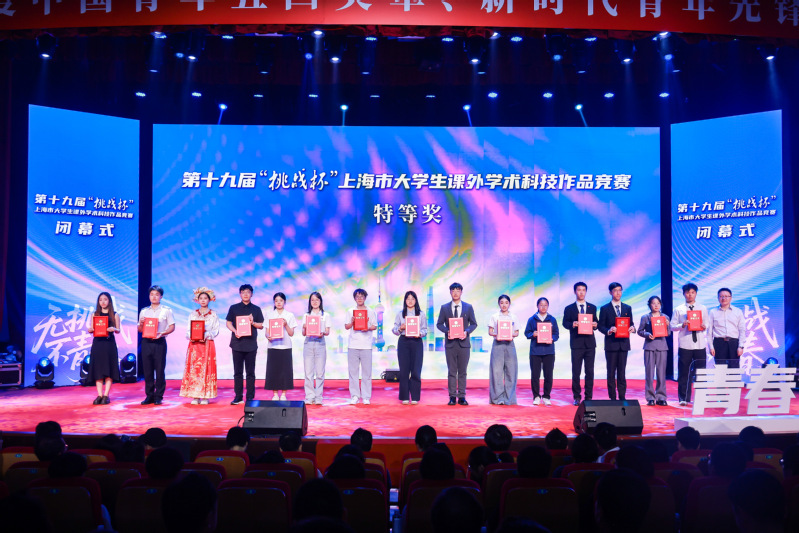 5月23-25日,第十九届“挑战杯”上海市大学生课外学术科技作品竞赛在上海工程技术大学举行,我校以特等奖 4 项、一等奖 5 项、二等奖 1 项、三等奖 4 项的优异成绩位列上海市第三,再次蝉联“优胜杯”。此次比赛中,我校特等奖作品首次全面涵盖自然科学类学术论文、哲学社会科学类社会调查报告、科技发明制作等三大类全部赛道,实现新突破!