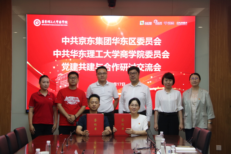 6月17日上午,商学院党委与京东集团华东区党委在商学院大楼405会议室举行党建共建签约仪式,校党委副书记沈海涛、党委学生工作部(处)部(处)长崔姗姗、商学院党委书记侯丽敏,以及京东集团华东区党委副书记徐亚谟、京东物流上海区快递快运事业部及华东区公共事务部相关负责人共同参与了签约仪式。商学院党委副书记兼纪委书记郑庆寰主持签约仪式。