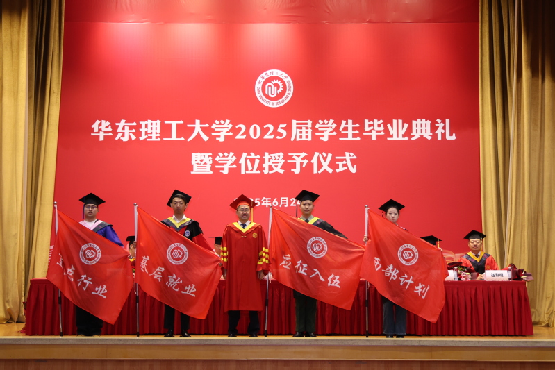 毕业典礼上,蒋传海为重点行业、基层就业、应征入伍、西部计划的毕业生代表授旗,鼓励他们积极投身中国式现代化建设,在科技创新、乡村振兴、绿色发展、社会服务、卫国戍边等各领域各方面工作中争当排头兵和生力军。