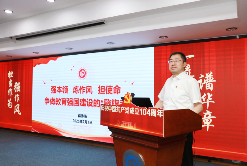 为庆祝中国共产党成立104周年,7月1日上午,学校在逸夫楼演讲厅举行青年干部成长论坛暨第29期青年干部培训班结业仪式,深入学习贯彻习近平总书记关于加强党的作风建设和年轻干部工作的重要论述,激励广大干部师生从党的奋斗历程中汲取智慧力量,以昂扬姿态投身教育强国建设宏伟征程。校党委书记蒋传海出席并讲授专题党课。