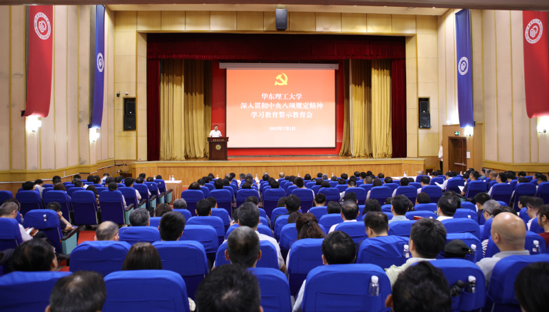 7月1日,学校在逸夫楼报告厅召开深入贯彻中央八项规定精神学习教育警示教育会,深入学习贯彻习近平总书记关于加强党的作风建设的重要论述,贯彻落实党中央、教育部党组关于开展深入贯彻中央八项规定精神学习教育的部署,进一步推动党的作风建设常态化长效化,纵深推进学校全面从严治党工作,以作风建设新成效推进学校高质量发展。校党委书记蒋传海主持会议并讲话。校领导班子成员出席会议。