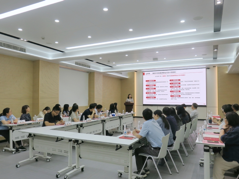 张文清作了题为“以教育家精神引领新时代高校师德师风建设”专题宣讲。她从加强师德师风建设的重大意义、高校师德师风建设的深刻内涵、教师违反十项准则典型案例分析三个方面进行详细阐述,带领大家深入学习习近平总书记关于师德师风建设的重要指示批示精神以及关于师德师风建设重要部署、重要文件和重点问题,解读了教育家精神的丰富内涵,重温《新时代高校教师职业行为十项准则》,介绍了学校、学院师德师风制度建设等相关情况;并通过典型案例剖析,警示大家牢记教师身份,严守师德底线,筑牢思想防线,大力弘扬教育家精神,扛起育人职责。