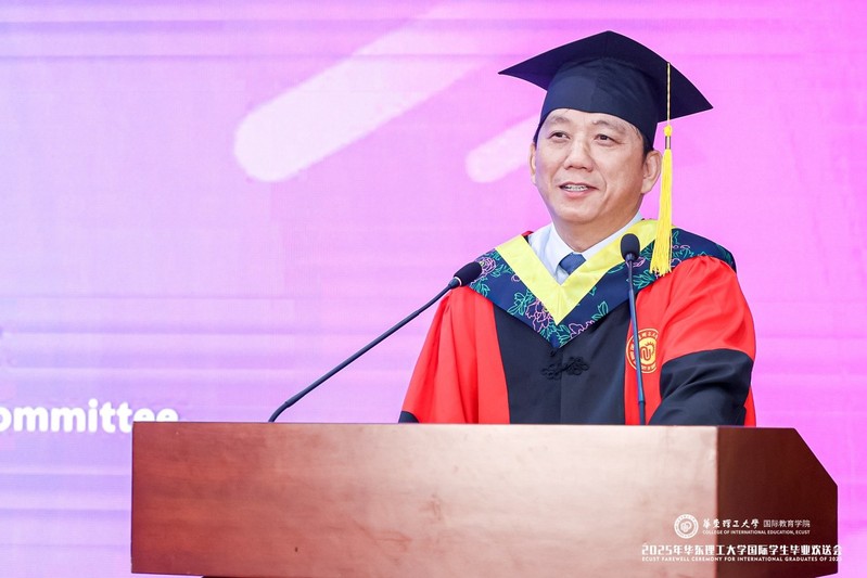 朱为宏校长寄语2025届国际毕业学子,祝贺他们圆满完成学业、即将奔赴“星辰大海”。他欣慰于同学们在华理书写了各自的精彩篇章:在实验室挑灯夜战创佳绩,在文体舞台绽放光芒,更作为文化使者将华理故事传向世界。朱校长以师者身份勉励新校友终身学习、诚信担当,珍视多元友谊,携手为人类命运共同体贡献力量。