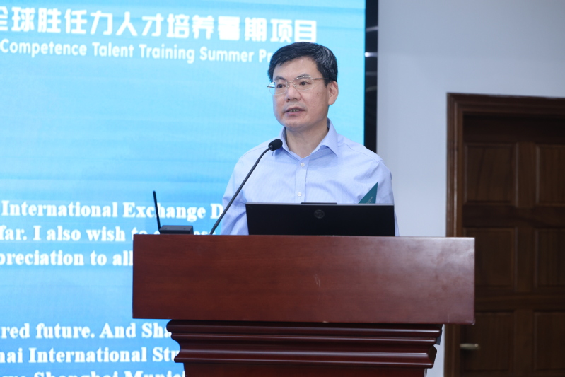 图片说明: 上海市教委国际交流处处长周勤健发言