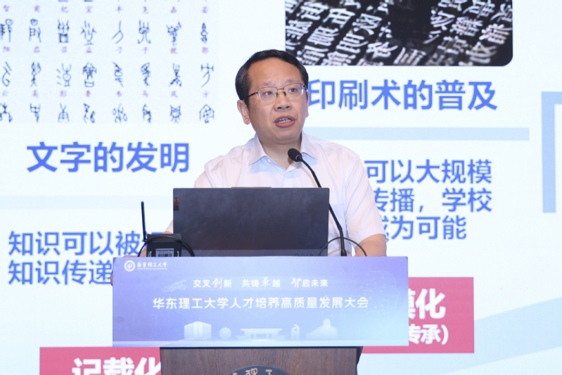 赵震代表上海市教育委员会,对学校人才培养高质量发展大会的召开和创新创业学院的成立表示热烈祝贺。他指出,上海市整体纳入教育部高等教育综合改革试点省市和学科专业设置调整优化综合改革试点省市。华理召开人才培养高质量发展大会,以人才培养为牵引推动学校综合改革,是学校更好地对接国家所急、发展所向、社会所需,推动学校人才培养模式改革的重要举措,充分体现了学校为党育人、为国育才的战略考虑和使命担当。他希望,学校聚焦国家和上海发展需求,聚焦特色发展核心优势,聚焦立德树人根本任务,聚焦人工智能与教育教学深度融合,推动科教融汇、产教融合、多学科交叉育人,促进重点产业人才供需精准匹配,全面提升人才培养、科技创新和社会服务能级水平,实现人工智能与教育发展双向赋能,提升整体育人效能。