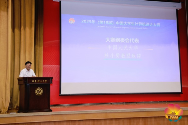 杜小勇代表大赛组委会致辞。他向本场赛事的承办高校、专家评委、志愿者团队和工作人员表示感谢,并回顾了大赛18年来的发展历程。他表示,大赛始终以学生为中心,通过持续优化赛制,真正实现了以赛促学、以赛促教的目标,希望所有参赛师生、专家评委等能够继续积极宣传推广大赛的文化和品牌,让更多的学生参与其中。