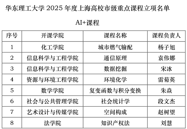 日前,2025年度上海高校市级重点课程立项名单公布,我校24门课程榜上有名。其中AI+课程8门,产教融合课程4门,紧缺急需人才领域课程4门,实验实训实践课程8门。截至目前,我校已有上海市本科重点课程334门。