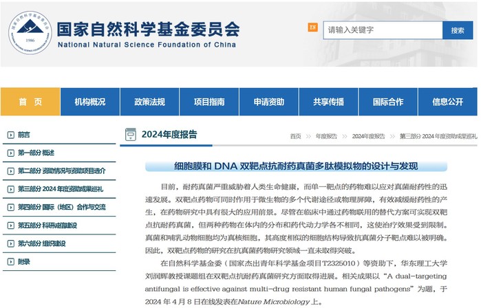 我校刘润辉教授课题组双靶点抗耐药真菌研究成果入选基金委2024年度报告