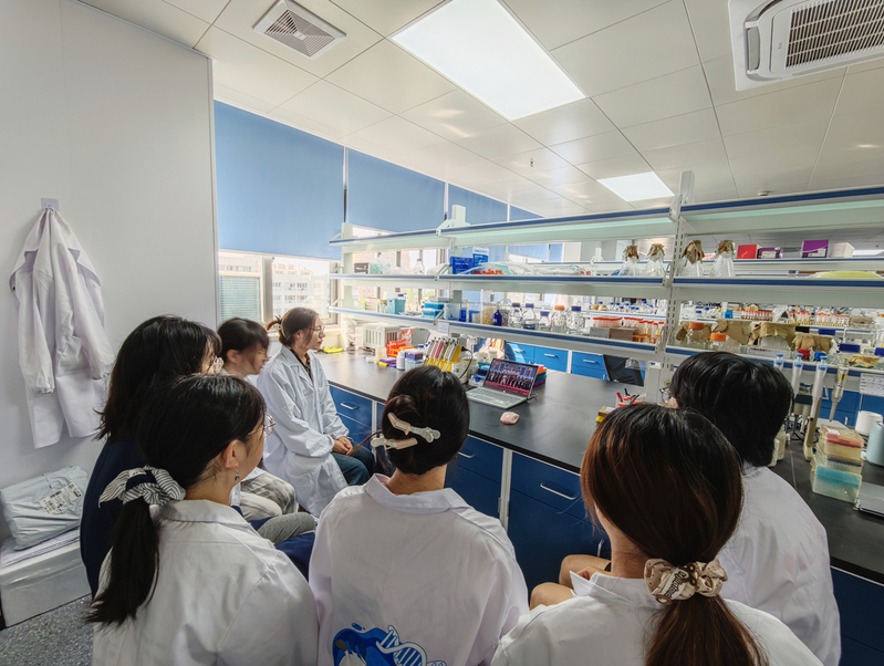 ▲学生在实验室观看直播