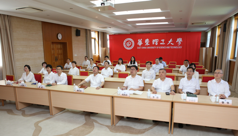 ▲校领导、部分职能部处负责人在和平楼第二会议室集中观看直播