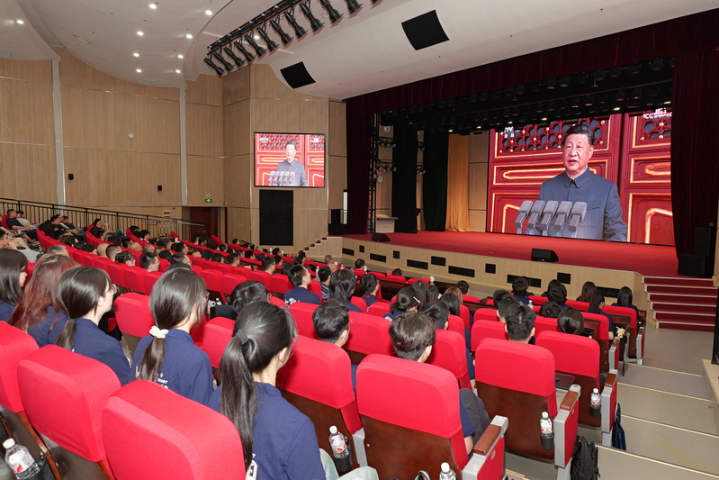 ▲奉贤校区在校师生集中观看直播