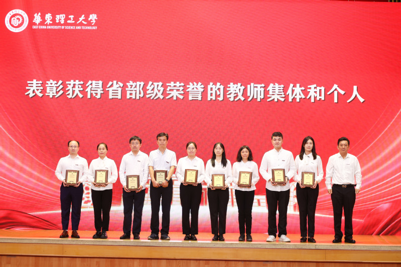 2025年教师节是我国第41个教师节。为深入学习贯彻习近平总书记关于教师队伍建设的重要讲话精神,推进实施教育家精神铸魂强师行动,9月10日上午,学校隆重举行主题为“以教育家精神铸魂强师,谱写教育强国建设华章”教师节庆祝大会,表彰2024-2025学年在教学、科研、管理等各项工作中取得优异成绩的教师集体和个人。校党委书记蒋传海,校长轩福贞,校党委副书记、纪委书记龚跃,副校长李涛、王慧锋、朱为宏、阎海峰、李春忠等出席会议。大会由校党委副书记沈海涛主持。大会主会场设在徐汇校区逸夫楼报告厅,各二级党组织的24个分会场进行了同步直播。