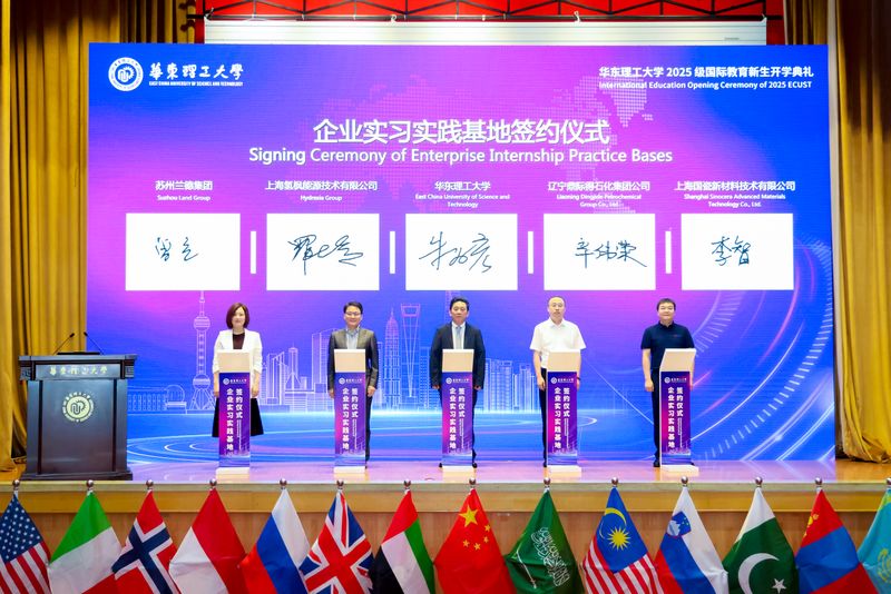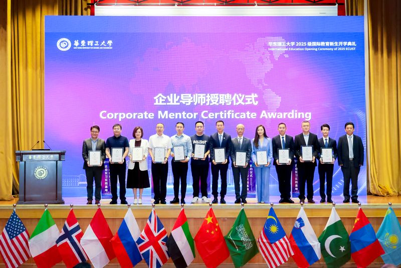 为深化产教融合,提升人才培养质量,朱为宏院士代表学校与苏州兰德、上海氢枫能源、辽宁鼎际得石化、上海国瓷新材料等企业签署了实习实践基地协议,为上海久事体育产业发展(集团)有限公司董事长杨亦斌、智元创新(上海)通用业务部总裁王闯、惠生工程副总裁吕建宁、上海重塑能源集团副总裁马晶楠、苏州兰德集团国际合作高级副总裁曾亮、上海氢枫能源副总裁罗世春、华为上海终端部全屋智能大客户总经理龚述华、辽宁鼎际得石化集团公司总经理辛伟荣、辽宁鼎际得石化股份有限公司总经理吴春叶、上海国瓷新材料技术有限公司总经理李智、世索科投资有限公司经理马畅儒、上海化工研究院高级工程师汪红辉等12名企业代表,颁发了企业导师聘书。