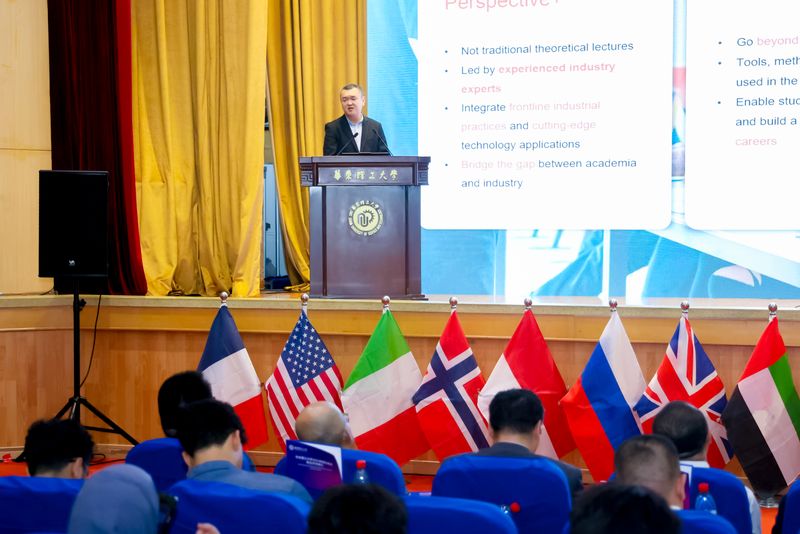 最后,企业导师代表上台发言,上海重塑能源集团副总裁马晶楠和世索科投资有限公司经理马畅儒以个人经历与行业背景为例,勉励学生把握在华学习机会,积极参与产业实践,为构建可持续未来贡献力量。