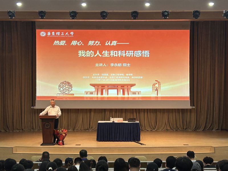 10月17日下午,我校杰出校友、中国科学院院士李永舫应邀重返母校,以“热爱、用心、努力、认真——我的人生与科研感悟”为题,与师生共话科研征程与人生智慧。校友企业家联谊会副秘书长吴保东,上海晋扬新材料科技有限公司总经理温波,以及来自生物工程学院、商学院、未来企业家协会的150余名师生、校友参加。讲座由生物工程学院党委书记程家高主持。