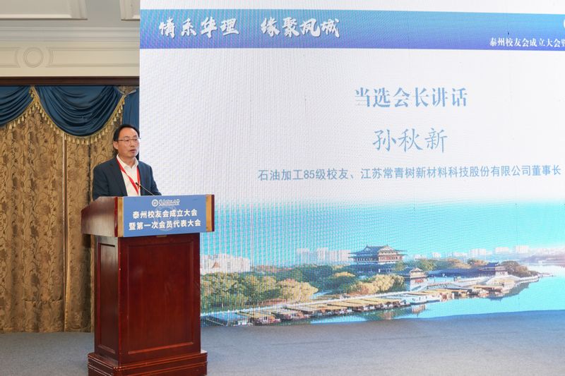 孙秋新在就任发言中感谢母校的培养和大会工作人员的辛勤付出。他表示,将团结理事会成员,竭诚服务在泰校友,积极搭建交流平台,推动校地产业协同,为母校发展和泰州高质量发展贡献力量。