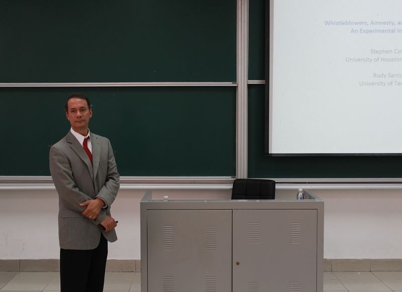 Associate Professor Rudy Santore of Haslam School of Business, University of Tennessee, was invited to pay an academic visit to ECUST from June 22 to July 1, 2016. And professor Santore made an academic report entitled “Informant, amnesty and management fraud : An Experimental Research” for the faculty and students of the School of Business, ECUST on June, 23, 2016.