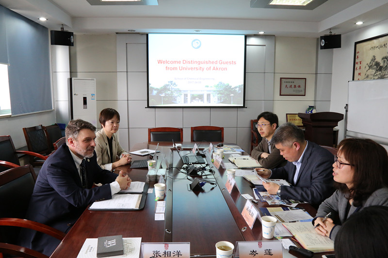 Mr. Donald Visco, Dean of the College of Engineering, and Ms. Julie Zhao, Dean Assistant of College of Engineering, University of Akron, paid a visit to the School of Chemical Engineering, ECUST on April 5th, 2017. They held a publicity lecture for students at Fengxian Campus on the exchange program for undergraduates of Akron University and held friendly talks on undergraduate  exchange project with Mr. Li Tao, Party Secretary of the School of Chemical Engineering, and Ms. Wu Yanyang, Dean Assistant of the School of Chemical Engineering.