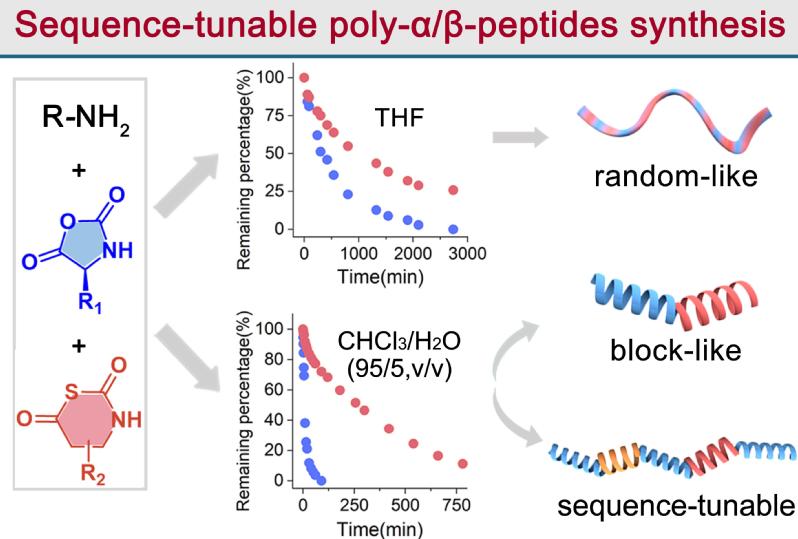 Recently, the research group of Professor Liu Runhui from School of Materials Science and Engineering, ECUST has made breakthrough achievements in the research field of α/β-polypeptide synthesis. The research article was published in iScience under the title of “Synthesis of Poly-α/β-peptides with Tunable Sequence Via the Copolymerization on N-carboxyanhydride and N-thiocarboxyanhydride”.
