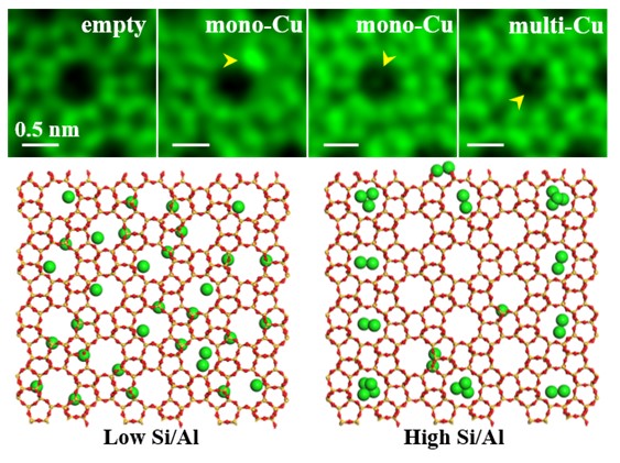Recently, the research team of Professor Dai Sheng from School of Chemistry and Molecular Engineering, Feringa Nobel Prize Scientists Joint Research Center and the research team of Professor Zhan Wangcheng from Institute of Industrial Catalysis have made new progress in the structure-activity relationship of direct oxidation of methane to methanol catalyzed by Cu-based molecular sieves. The related research article was published in Advanced Materials with the title of “Atomic Insights into the Cu Species Supported on Zeolite for Direct Oxidation of Methane to Methanol via Low-Damage HAADF-STEM ”.